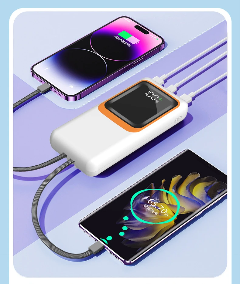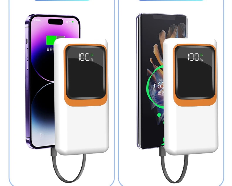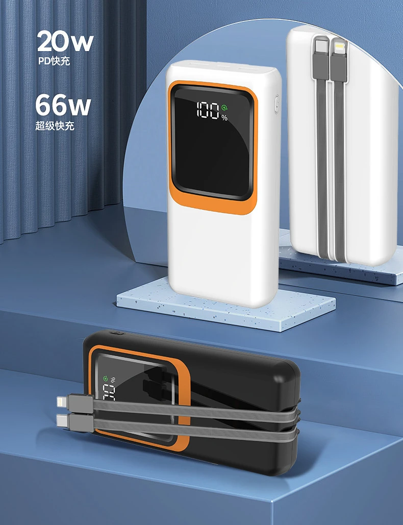 Power Bank – Batterie externe à charge super rapide 66W,10000mAH, 50000mAh, 20000mAh, câble intégré, grande capacité, portable, alimentation mobile extérieure,