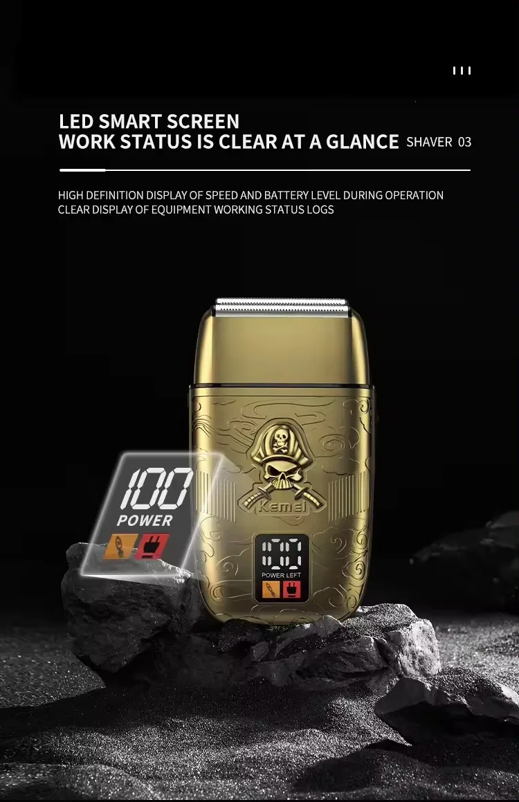 rasoir Kemei KM-TX15 rasoir electrique pour barbe barbe avec afficheur Affichage numérique 10W Machine à Raser pour Hommes doré
