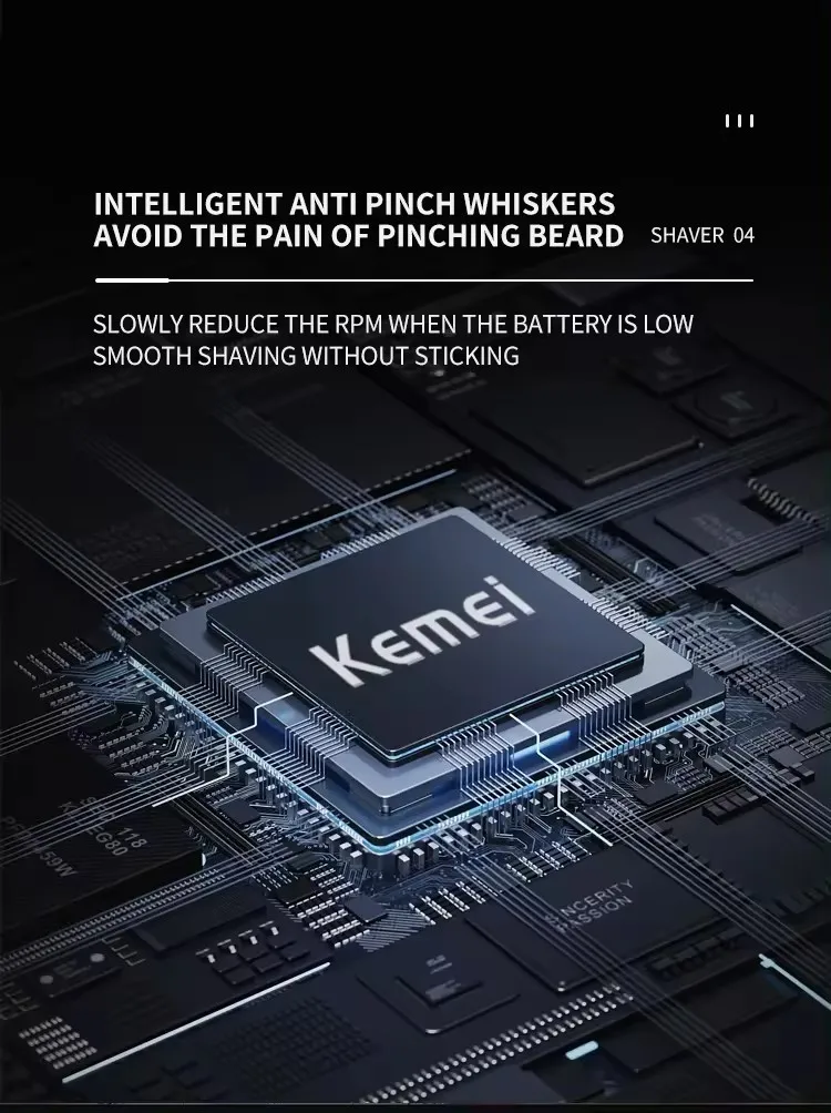 ★3. Affichage numérique du niveau de la batterie: un affichage numérique clair et concis indique la puissance restante de la batterie, vous permettant de surveiller l’état de charge à tout moment. Cette fonction vous assure de ne jamais manquer de puissance de façon inattendue pendant le rasage.