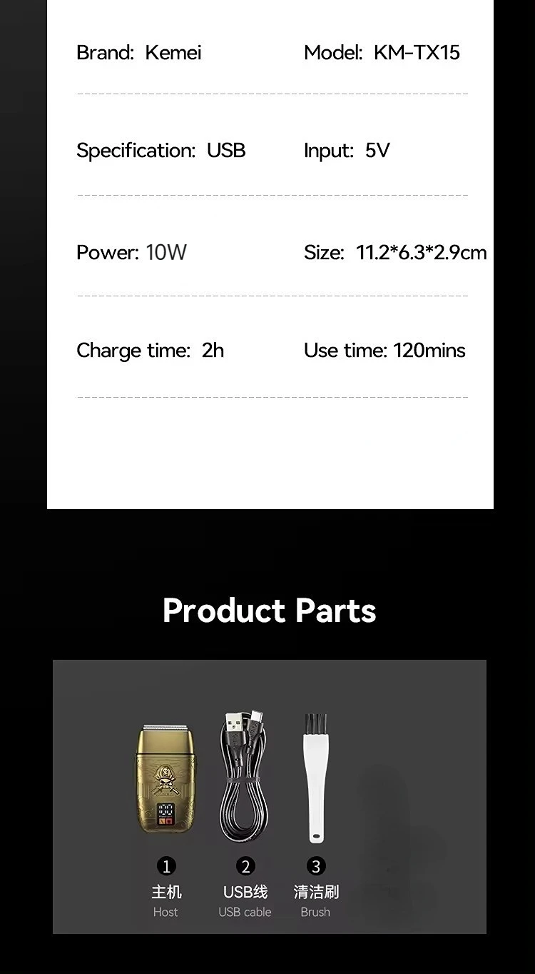 Kemei KM-TX1 – rasoir électrique pour hommes, entièrement en métal, Original,