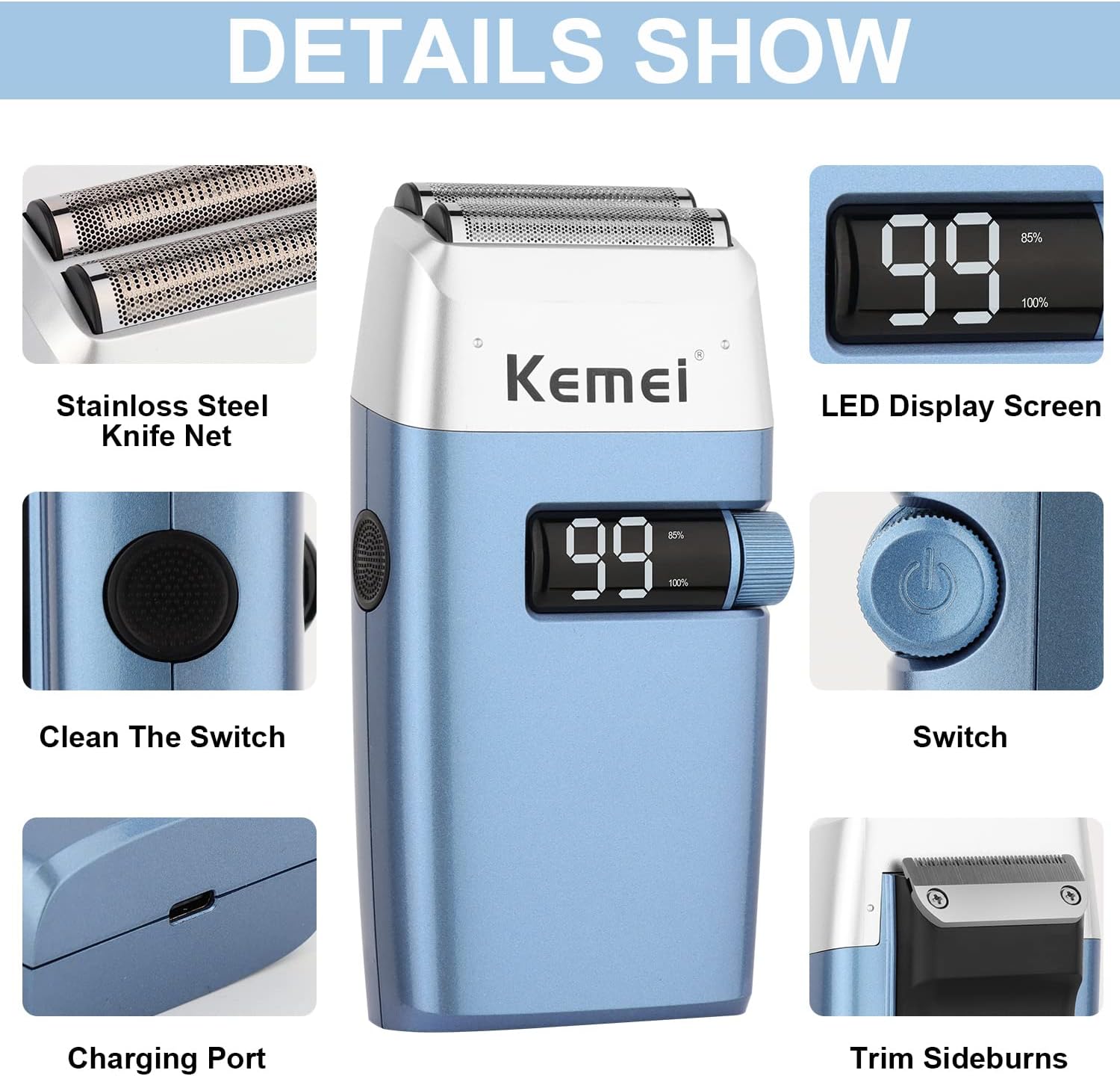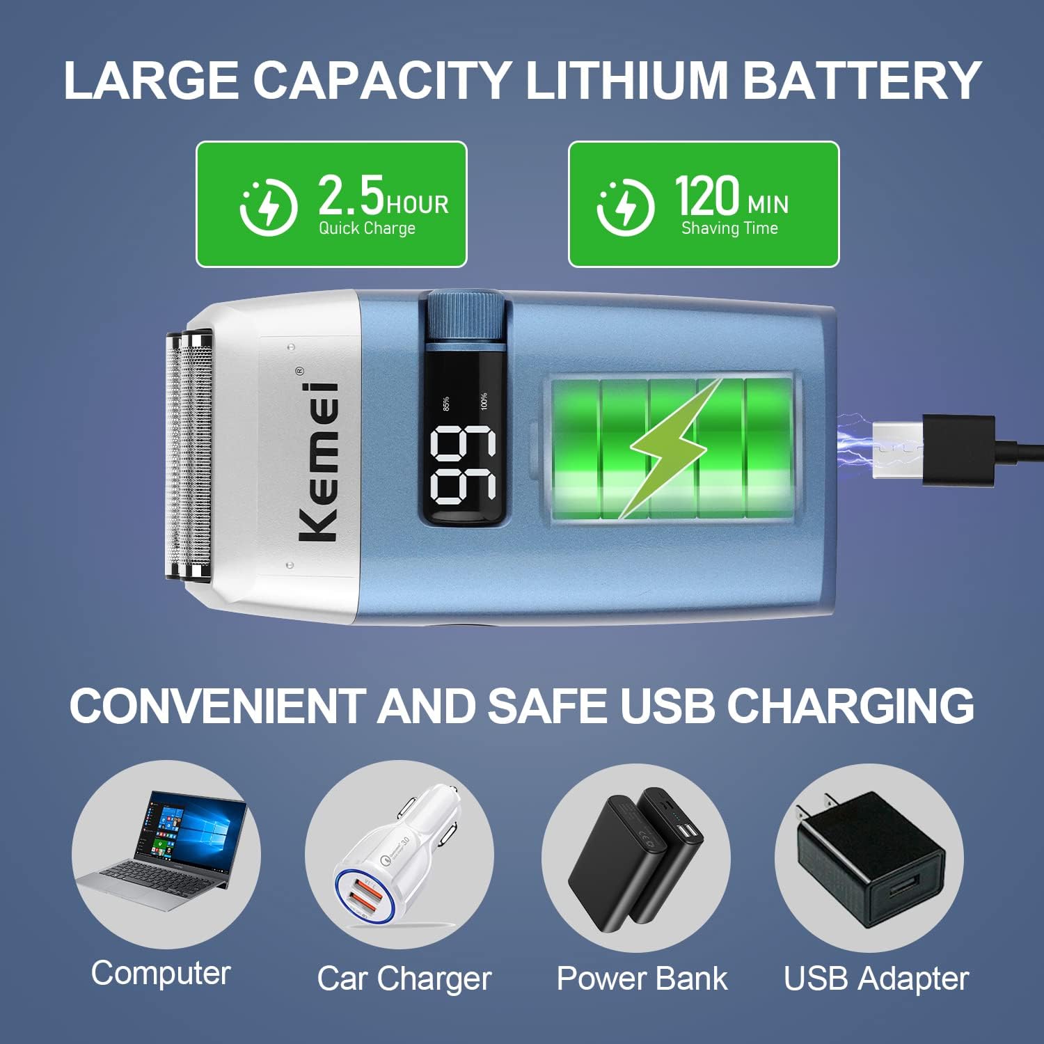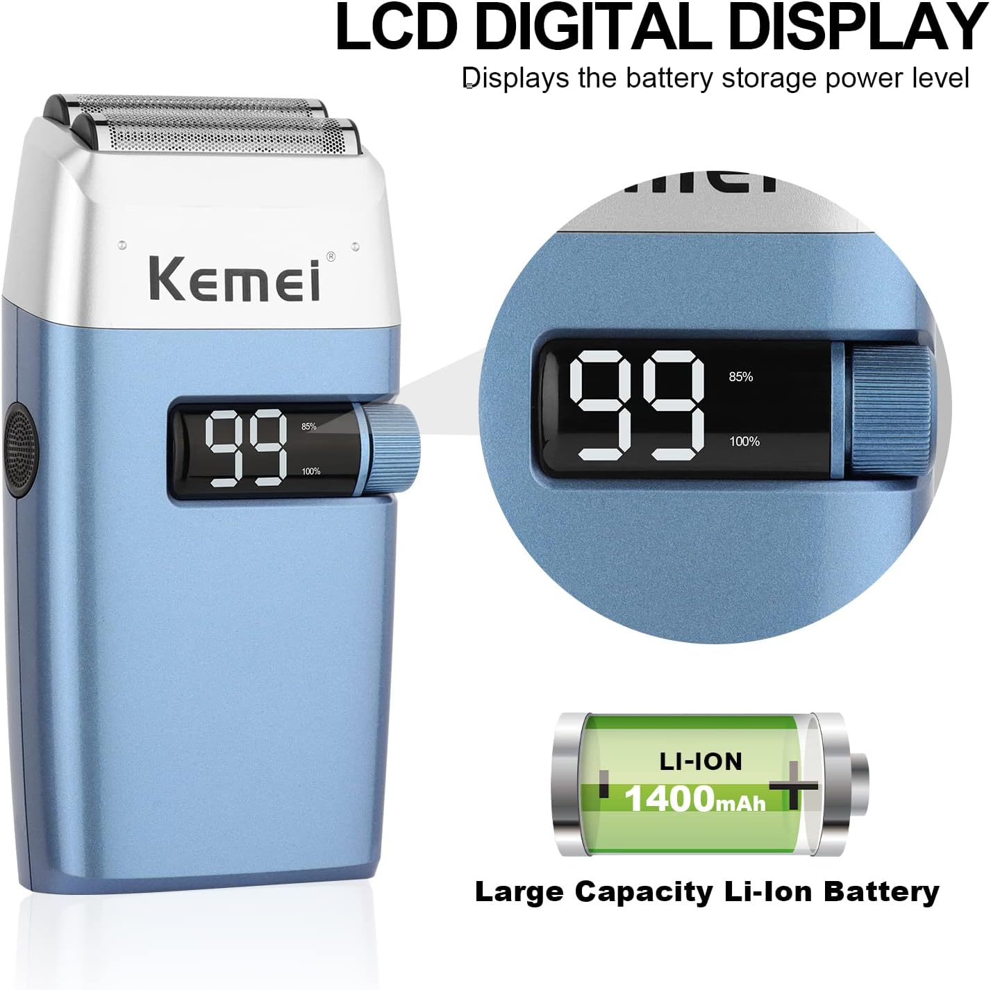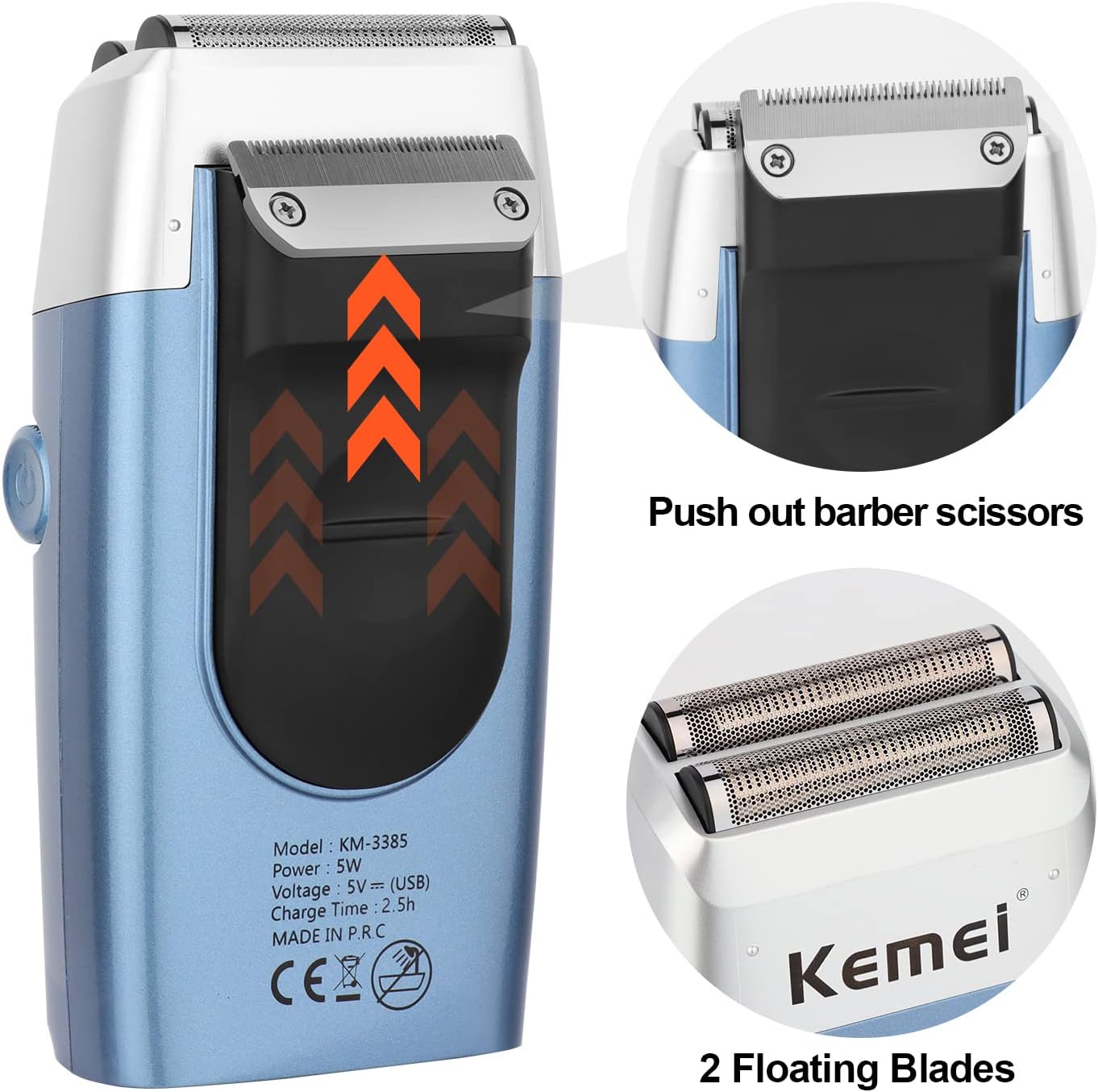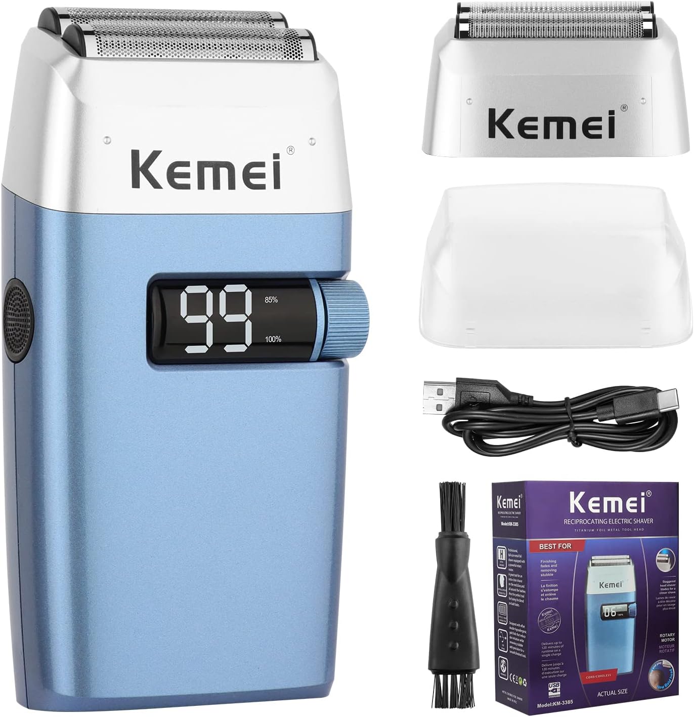 Rasoirs électriques KEMEI KM-3385 pour hommes, étanches, rechargeables sans fil, tondeuse à barbe à deux lames