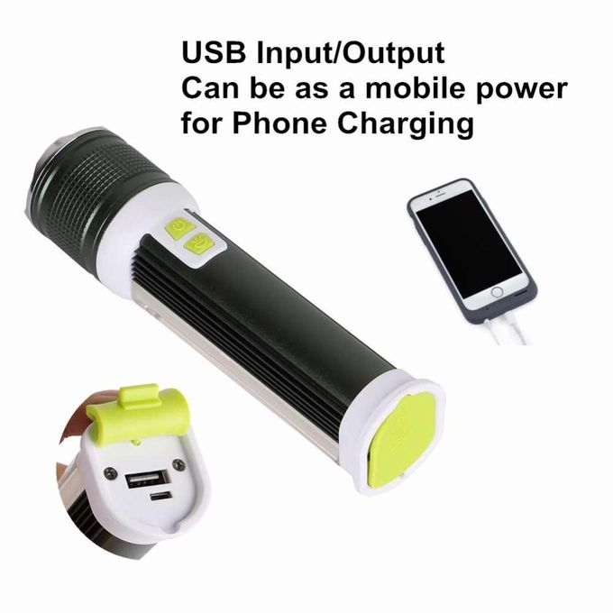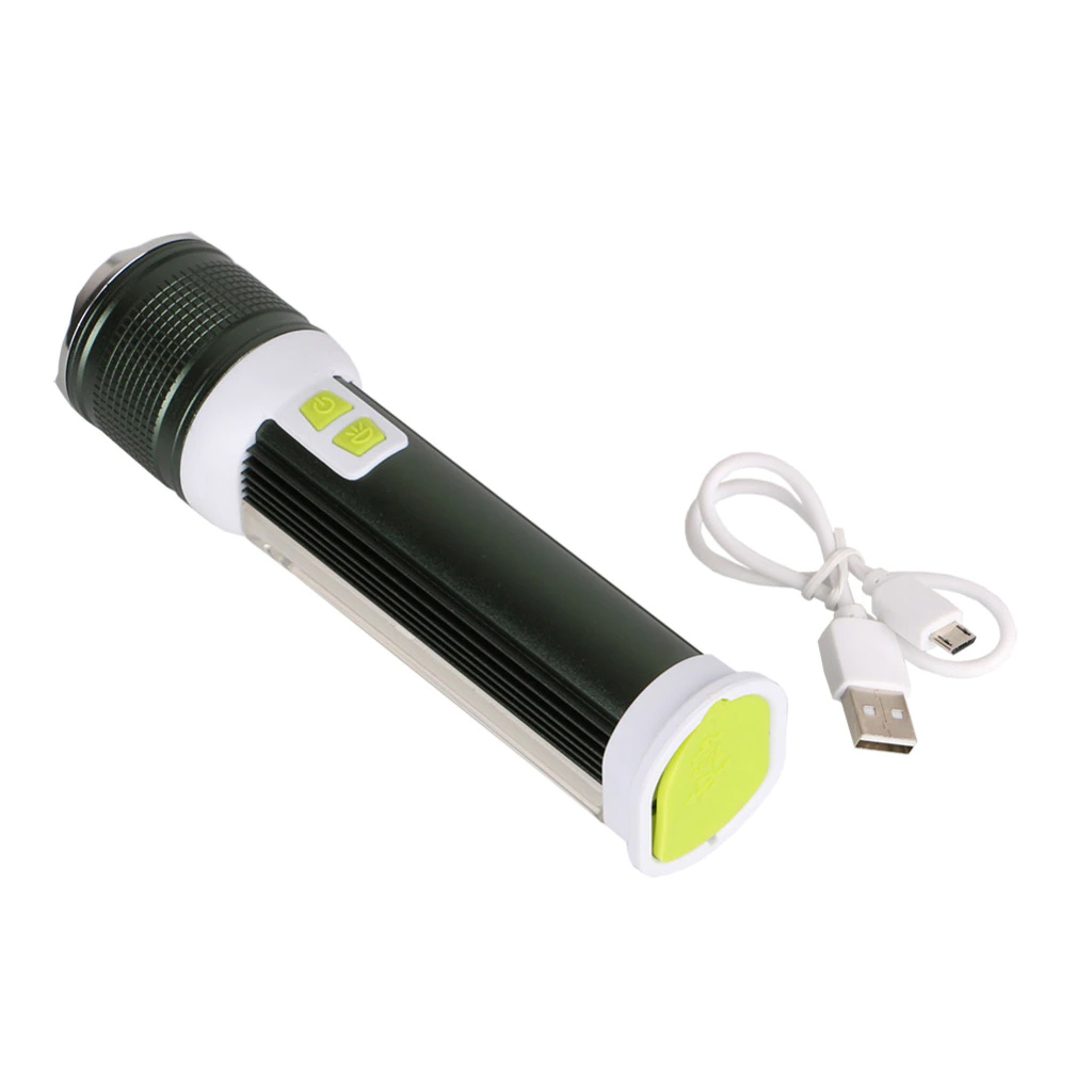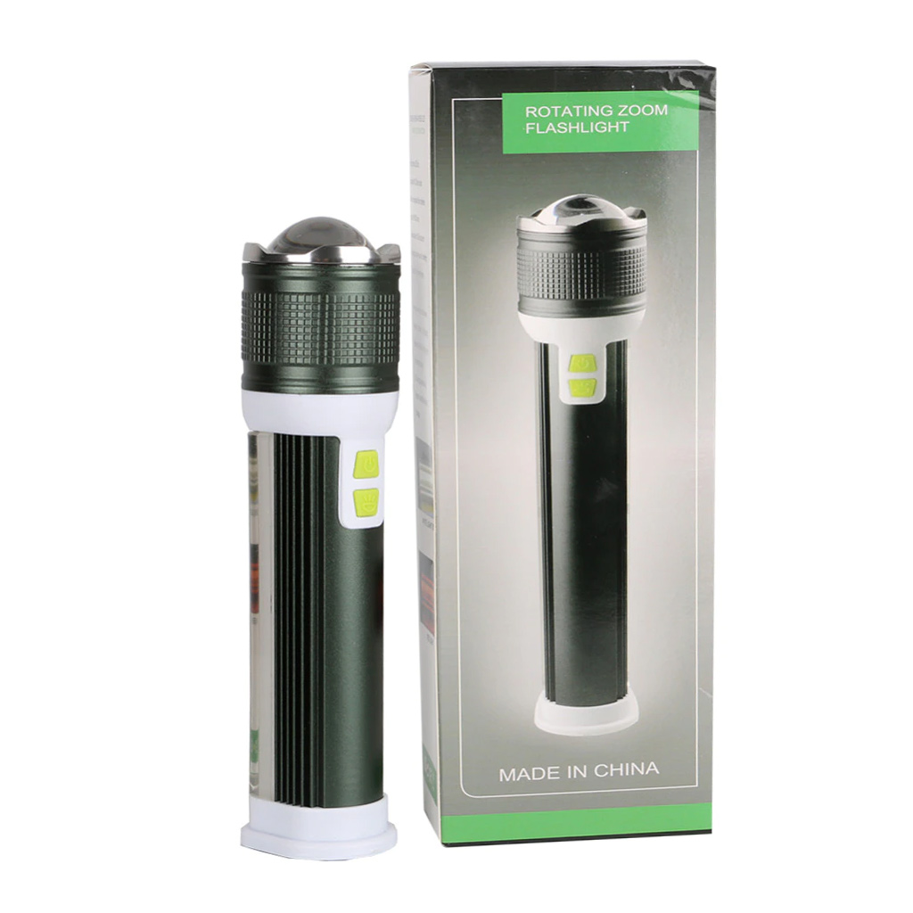 lampe torche rotative White Label, lampe LED rechargeable USB Algérie, lampe torche étanche camping, lampe torche 3 modes d’éclairage, lampe torche compacte randonnée, lampe torche