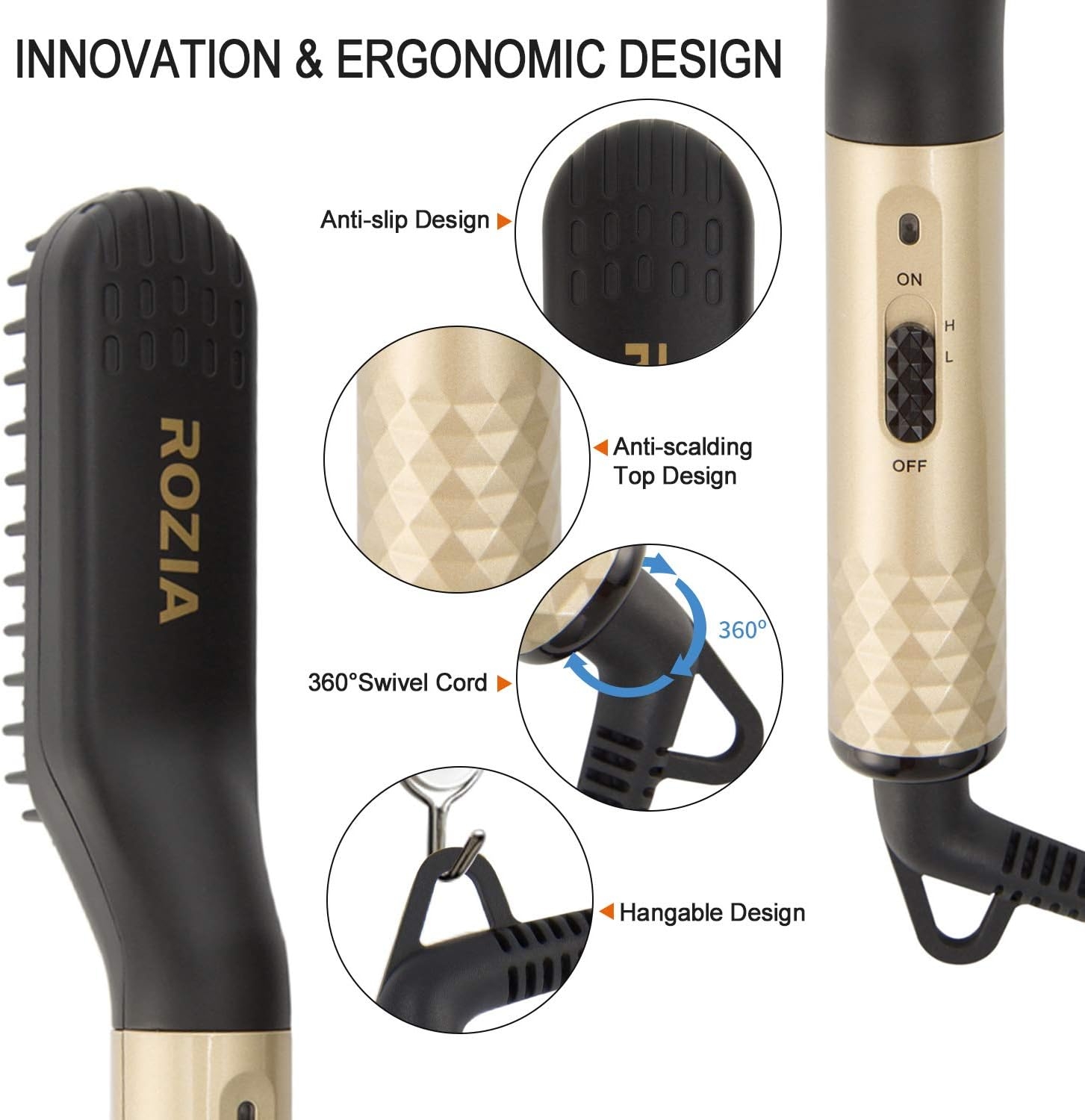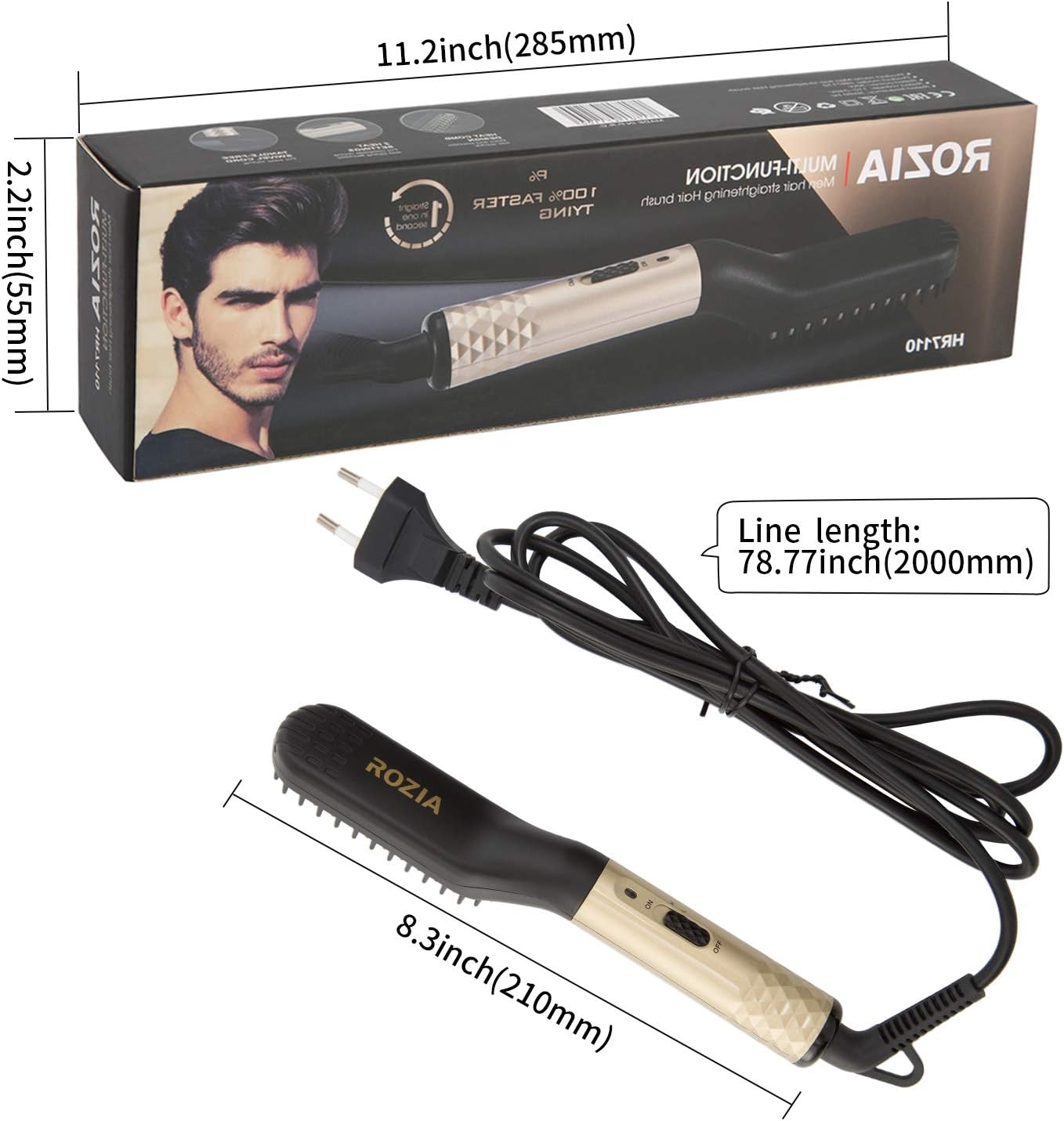 Rozia HR7110 Brosse lissante pour barbe et cheveux professionnel multifonctionnel pour hommes Lisseur de barbe thermo-ionique