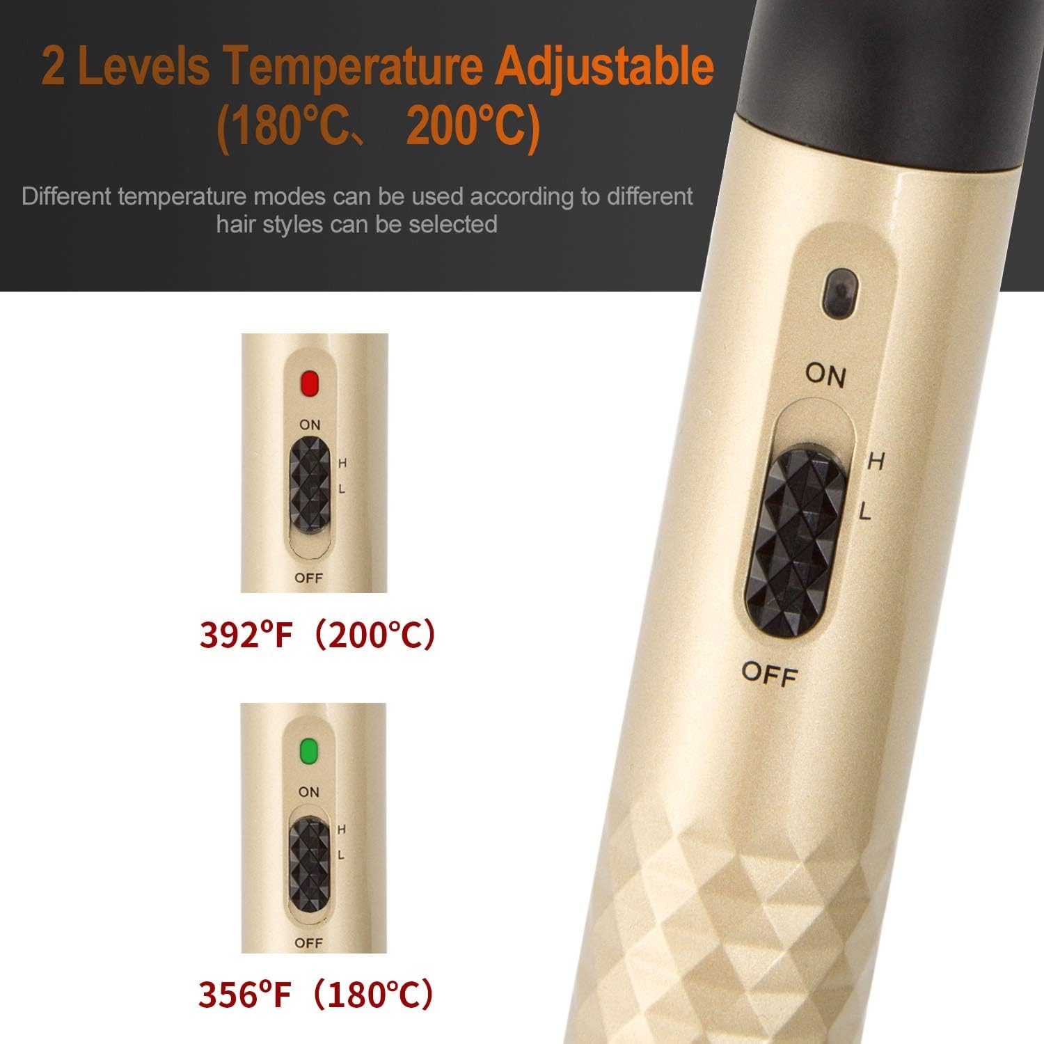 - [Deux réglages de température] : Il existe deux réglages de température pour la brosse lissante : basse température (180℃/356℉ lumière verte) pour vous aider à lisser vos cheveux en douceur, haute température (200℃/392℉ lumière rouge) vous pouvez librement concevoir la coiffure que vous souhaitez.