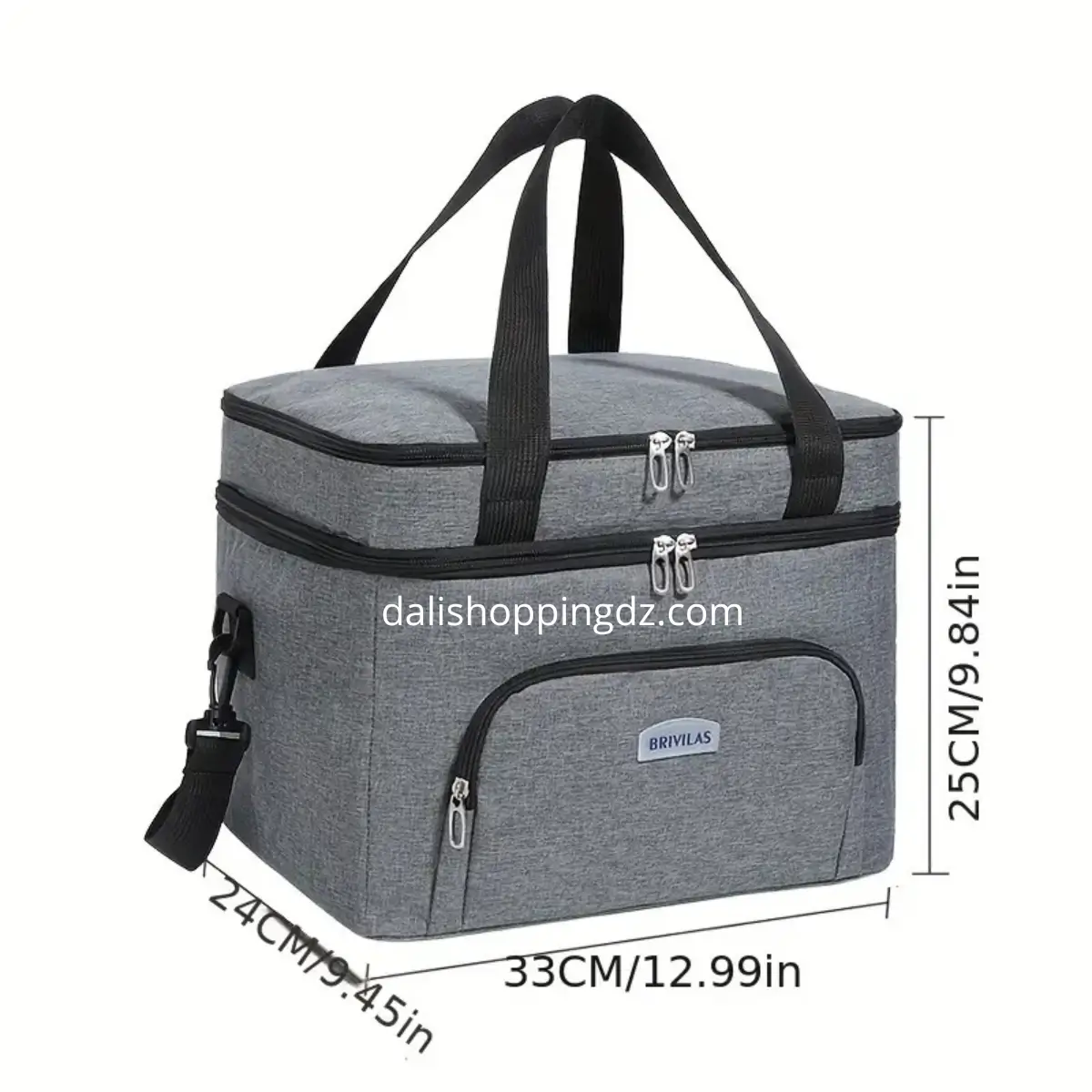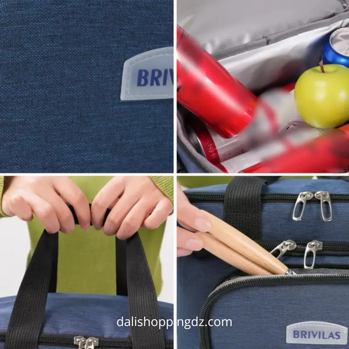 د.ج 800 – د.ج 1200Plage de prix : د.ج 800 à د.ج 1200Sac à Lunch pique-nique Brivilas Double Couche – Sac porte manger– Grande Capacité Isotherme & Compacte – grand model 23L