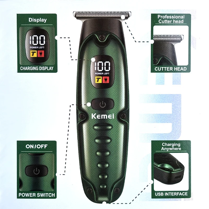 Tondeuse À Cheveux Kemei KM-PG1947 Sans Fil LCD USB