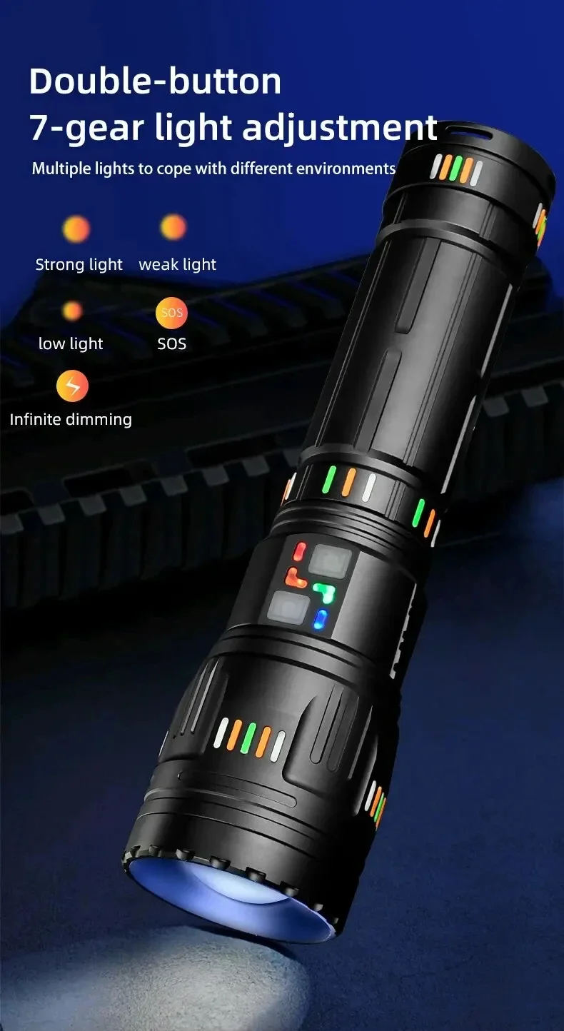Torche BL-G601 BL-G600LED laser Lampe de poche , 15000lm, 7 modes, batterie externe, affichage extérieur, n’aime, torche d’urgence, lanterne de camping