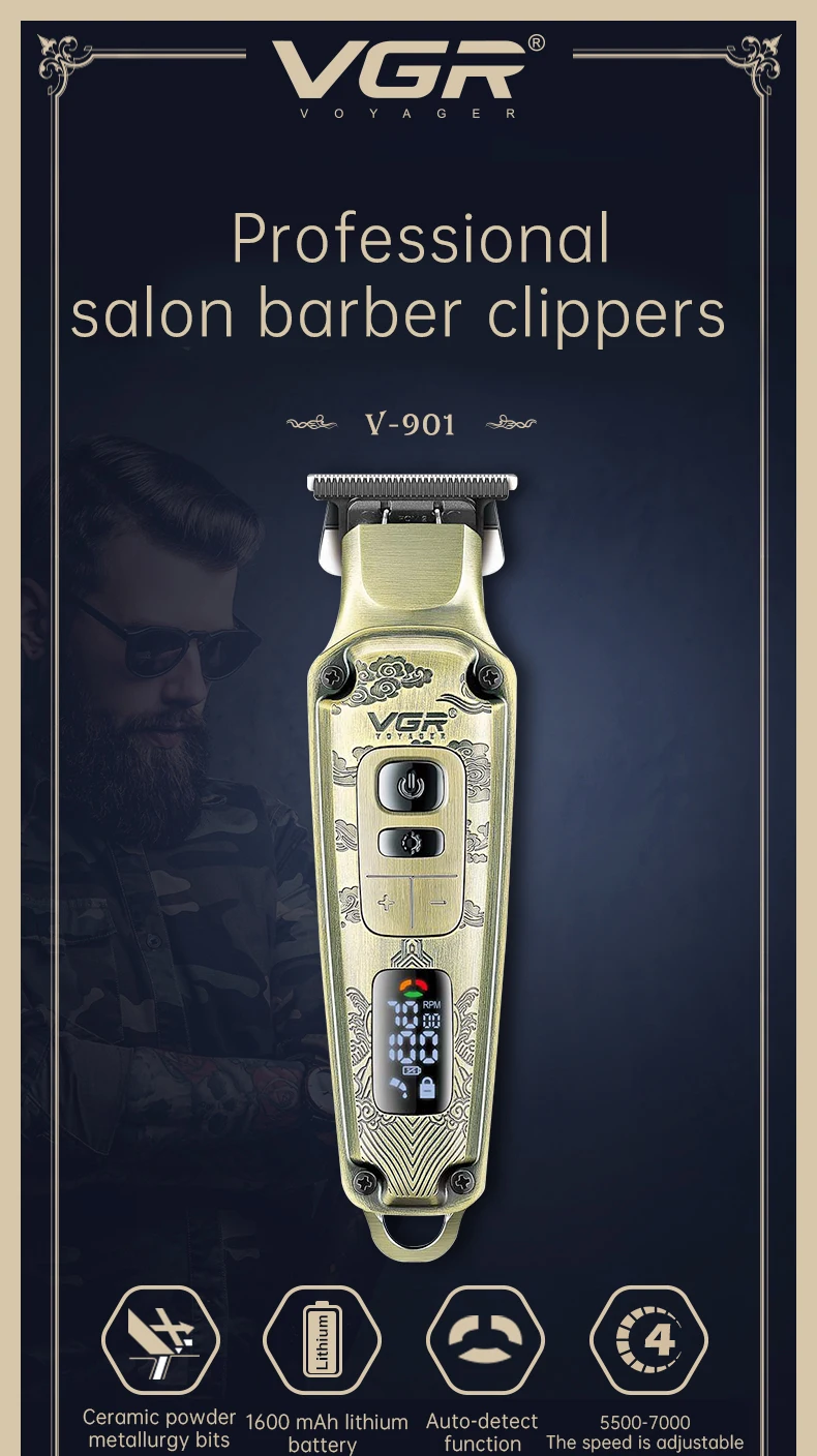 Vgaz901-Tondeuse à cheveux portable aste pour hommes, soins personnels réglables professionnels, tondeuse de barbier pour salon militaire, USB LCD, VgazV901