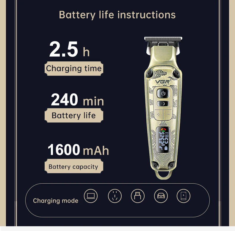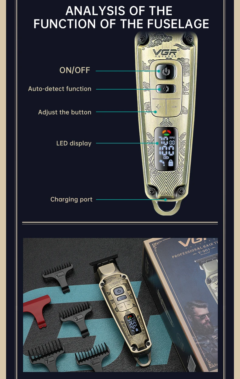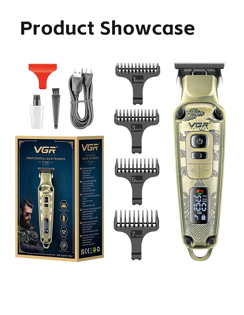 Tondeuse à cheveux VGR 901, rechargeable, portable, professionnelle, réglable, pour les soins personnels, tondeuse pour hommes, salon USB LCD VGR V901