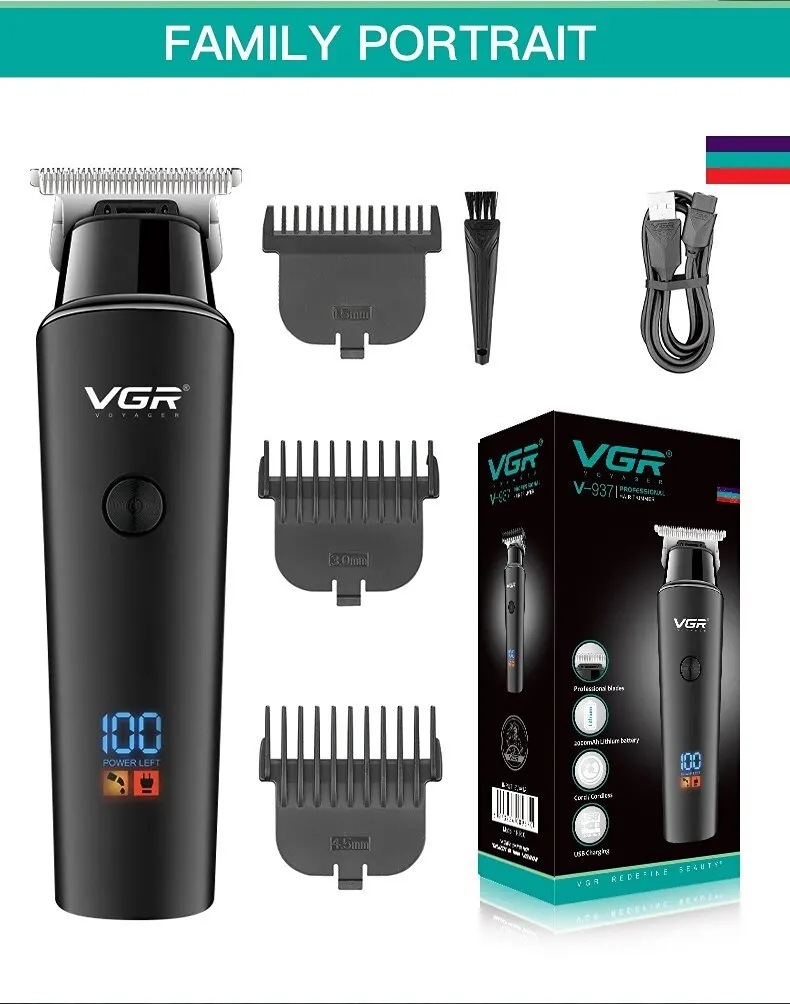 ماكينة تشذيب الشعر VGR الاحترافية 0 ، شاشة ليد رقمية