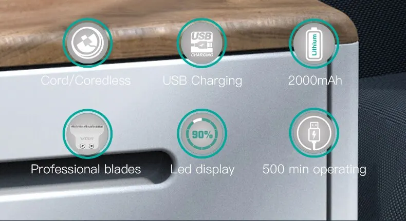 VGR Tondeuse À Cheveux Professionnel Électrique Tondeuses Sans Fil Tondeuse À Cheveux Rechargeable LED Affichage V 937